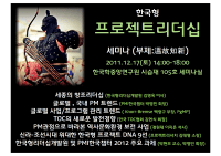 PMPCafe동호회에서 피엠위즈 대표시면서, PMBOK 4차 한글본 번역 검수 위원이신 최광호 대표을 초빙하여 “EPM과 PMO 사업가치 강화”라는 주제로 세미나를 했다. 최광호 대표님과는 PMBOK4차 한글본 번역 검수 작업을 같이하였는데, 너무 재미있는 이야기 꾼이시라, 주변 위원 분들이 배꼽을 잡으면서 웃었던게 한두번이 아니었다. 개인적으로는 최광호 대표님 강연은 처음들었는데 제스춰를 써가시면서 재미있게 추진하셨다. 음료수 떠다 드리면서 우연찮게 본 강의자료에는 출력물에 […]